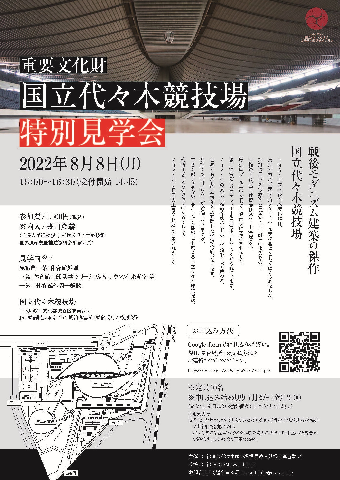 一般社団法人国立代々木競技場世界遺産登録推進協議会についてのご質問、講演会のお申込み、取材のお申込みは下記のフォームよりお問い合わせください。(*必須項目)
