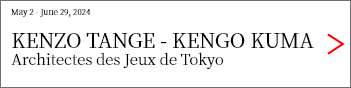 Tange made bold use of a suspended roof structure in the Yoyogi National Gymnasium, skillfully arranging two gymnasiums, one large and one small, and a promenade connecting them. By taking advantage of the difference in elevation between Shibuya and Harajuku areas, Tange succeeded in smoothly guiding various visitors from Shibuya and Harajuku into the gymnasiums. Tange collaborated with Yoshikatsu Tsuboi, a structural engineer, and Uichi Inoue, a HAVC and sanitary equipment specialist to integrate numerous cutting-edge technologies, resulting in a futuristic design. On the other hand, the massive but gently sloping suspended roof of the first gymnasium is reminiscent of the large temple and shrine buildings of the Nara period (710-794) and strongly evokes a sense of continuity with traditional Japanese architecture.